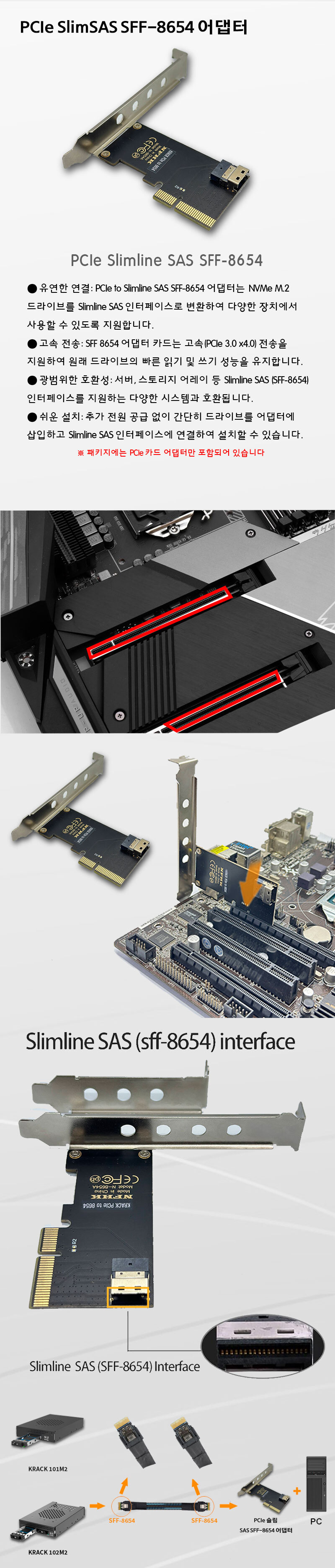 > K-RACK PCIe to slimSAS 4i SFF8654 어댑터 PCIe x4 카드