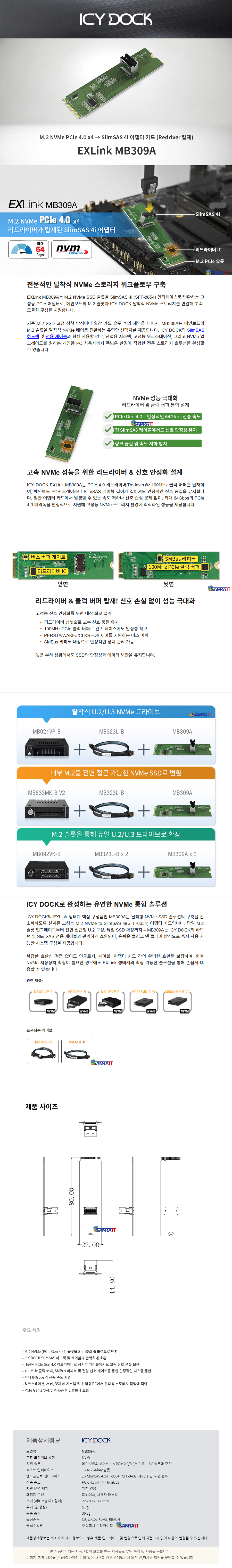 ICY DOCK MB309A M.2 NVMe PCIe 4.0 x4 to SlimSAS 4i 고급 안정화 Redriver 탑재 어댑터 카드