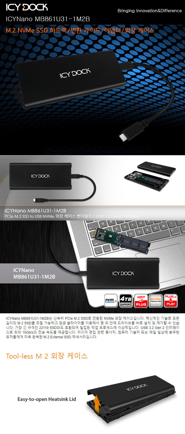 ICY DOCK MB861U31-1M2B PCIe M.2 SSD to USB NVMe 외장 케이스