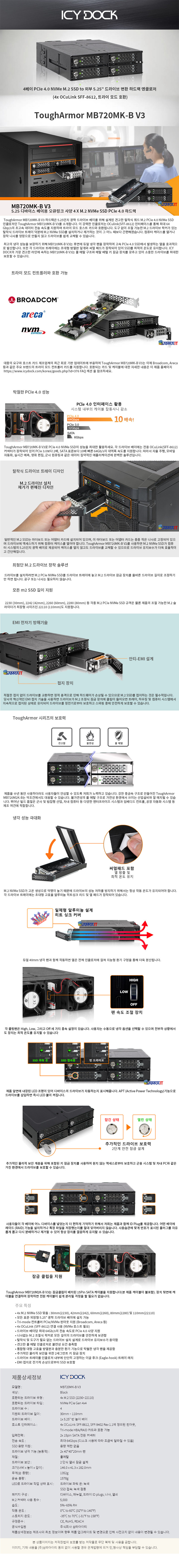 ICY DOCK MB720MK-B V3 4베이 M.2 NVMe PCIe 4.0 트라이 모드 호환 하드랙