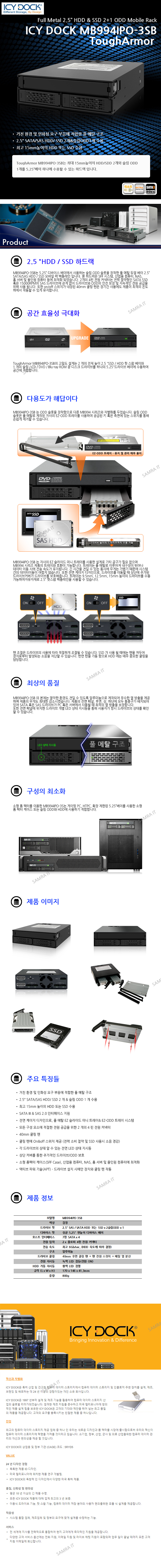 ICY DOCK ToughArmor MB994IPO-3SB 5.25베이용 2.5인치 HDD/SSD+슬림ODD 장착가능 베이