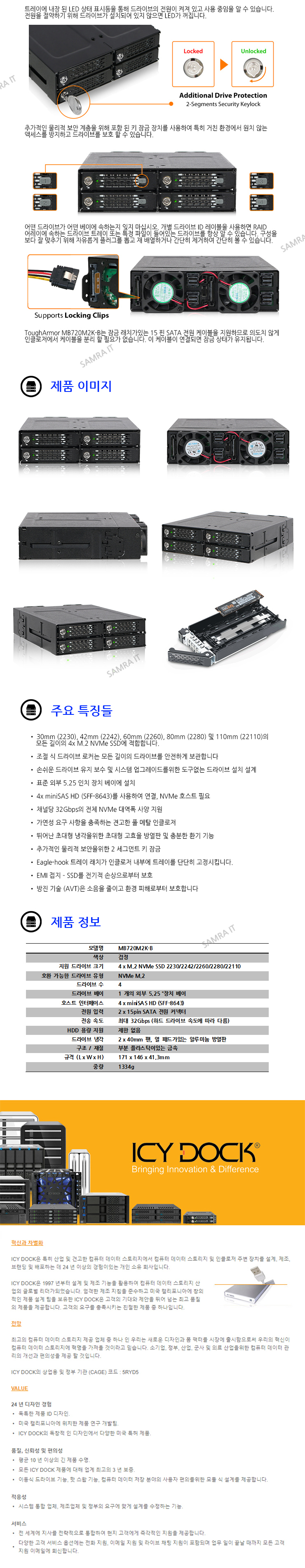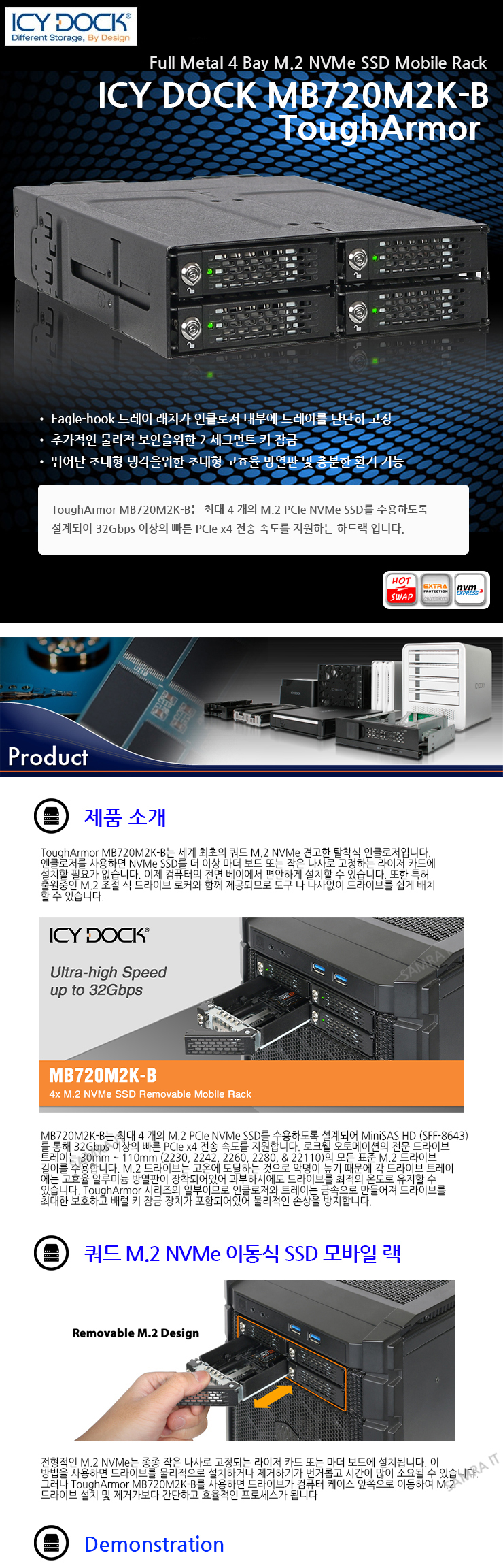 ICY DOCK MB720M2K-B 4베이 M.2 NVMe 이동식 하드랙