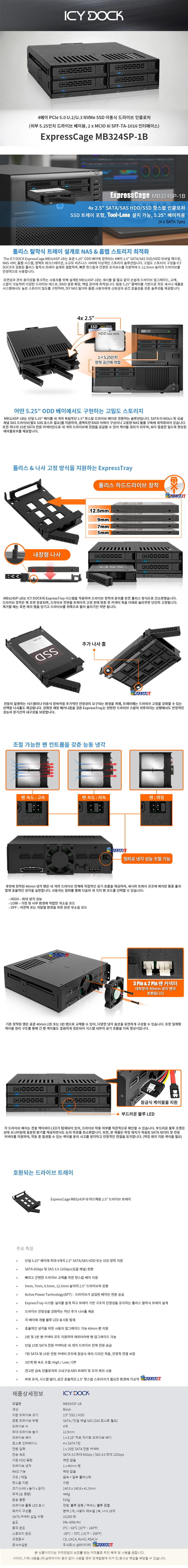 ICY DOCK MB324SP-1B 4베이 2.5 SATA/SAS HDD & SSD 핫스왑 모바일 랙